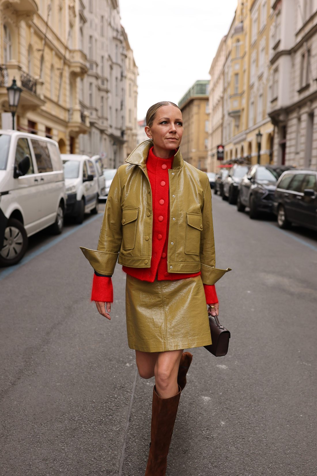 Hello from Prague! It is my first time visiting – what an incredibly beautiful city! I hit the ground running on our first day and the cooler temps called for boots and a sweater! Sézane makes such incredibly perfect fall pieces and when I saw this olive set and this red pop it was a match made in heaven. Olive and red is one of my all-time favorite autumn color combos. This fit was ideal for a day of sightseeing, eating, and a pit stop at a museum. See more of my fall picks from Sézane below…