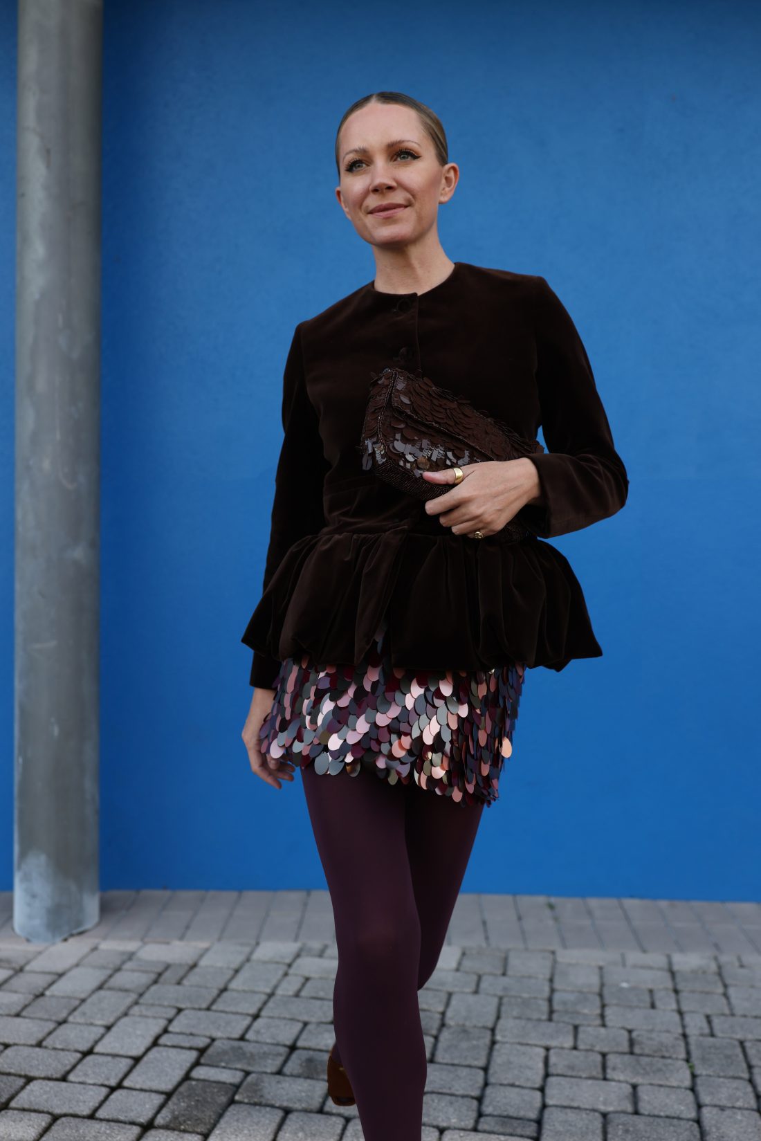 Velvet Jacket // Sequin Skirt // Bag // Shoes